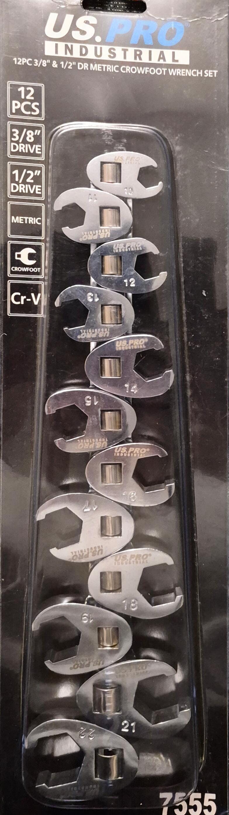 12pc crowfoot set – Combination of 3/8" and 1/2" drive wrenches.