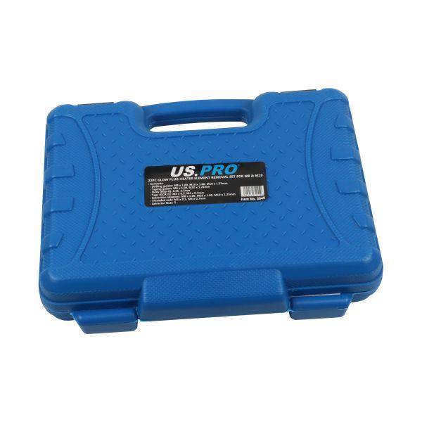 A comprehensive 22-piece removal kit designed to safely extract broken glow plug heater elements that have snapped and become lodged inside the cylinder head.