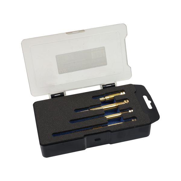 This 4 piece glow plug bore reamer set is designed to clean carbon deposits from the glow plug bore and help prevent glow plugs seizing in the aperture.