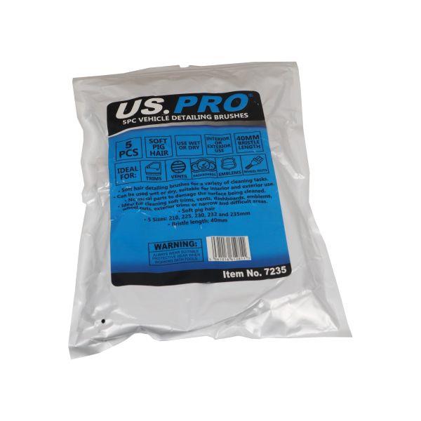 This US PRO Tools vehicle detailing brush set is designed for a wide range of cleaning tasks on both vehicle interiors and exteriors.