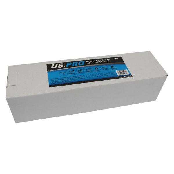 The set contains 3 holders, one for each of the following drive sizes: 1/4", 3/8" and 1/2". Total capacity for the 3 is for 75 sockets.